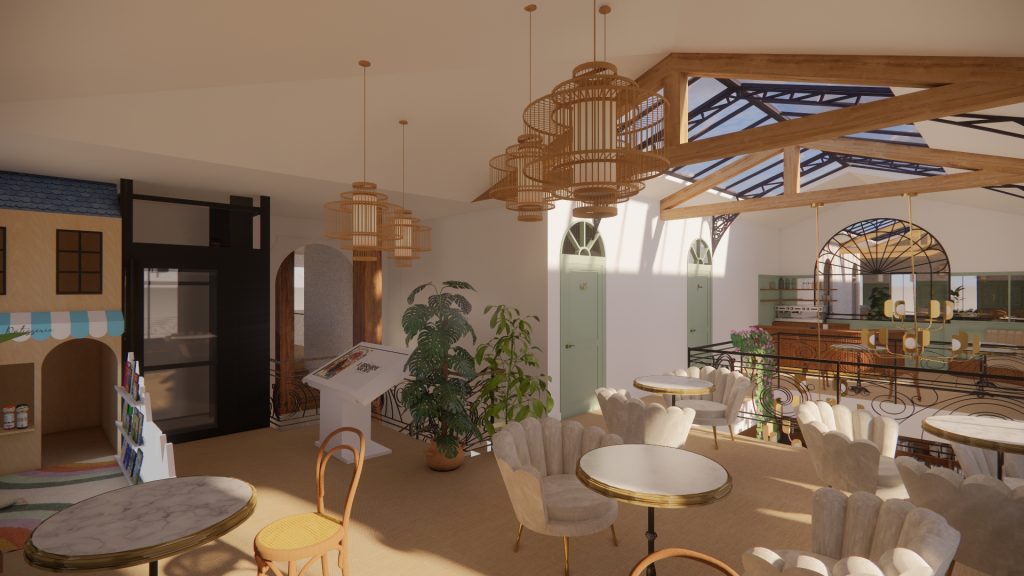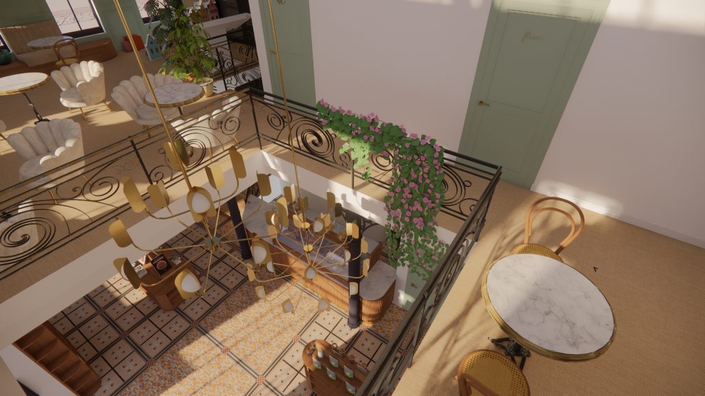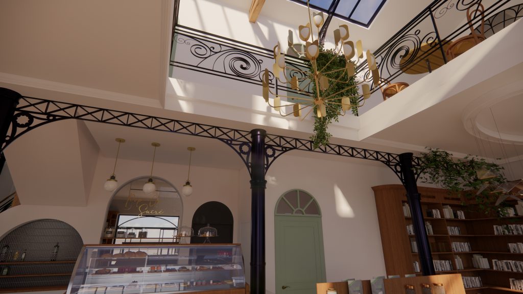 Ce projet s’inspire de l’histoire du quartier et de l’esthétique industrielle de la fin du XIXᵉ siècle, qu’il revisite avec une touche poétique et élégante. L’architecture mêle structures métalliques inspirées de Gustave Eiffel, arches et lignes courbes, adoucies par des références à l’Art Nouveau et par une dimension littéraire en écho à Baudelaire, ancien résident de la rue. La verrière de toit, pensée comme un atelier, baigne l’espace de lumière naturelle et renforce l’identité parisienne du lieu.